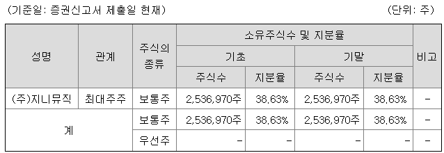 5%이상 주주 현황 (공모 전 지분율) 지니뮤직 주가는 아래와 같습니다.