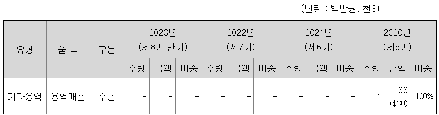 주요 제품 등의 매출현황 □ 주요 제품 및 서비스