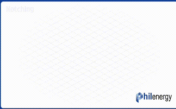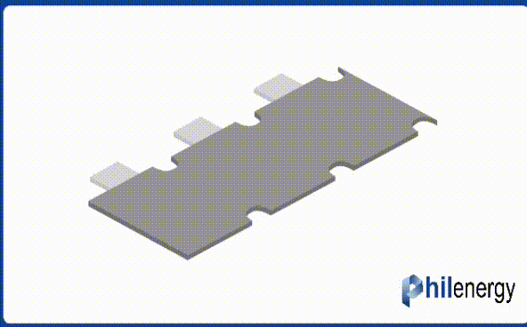 Notching (출처: 필에너지 홈페이지) 음극과 양극의 극판을 적절한 크기로 Cutting 후, 분리막과 번갈아 적층하여 Jelly Roll을 제작하는 Stacking 설비,