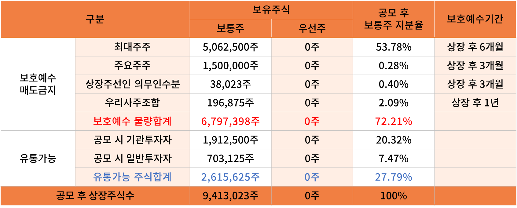 - 유통가능금액 : 785억(희망공모가 최상단 가정)