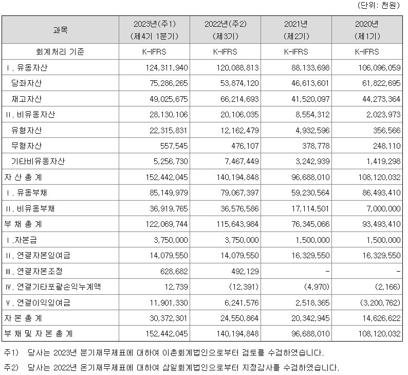 연결재무상태표, 연결손익계산서, 연결자본변동표는 아래와 같습니다.