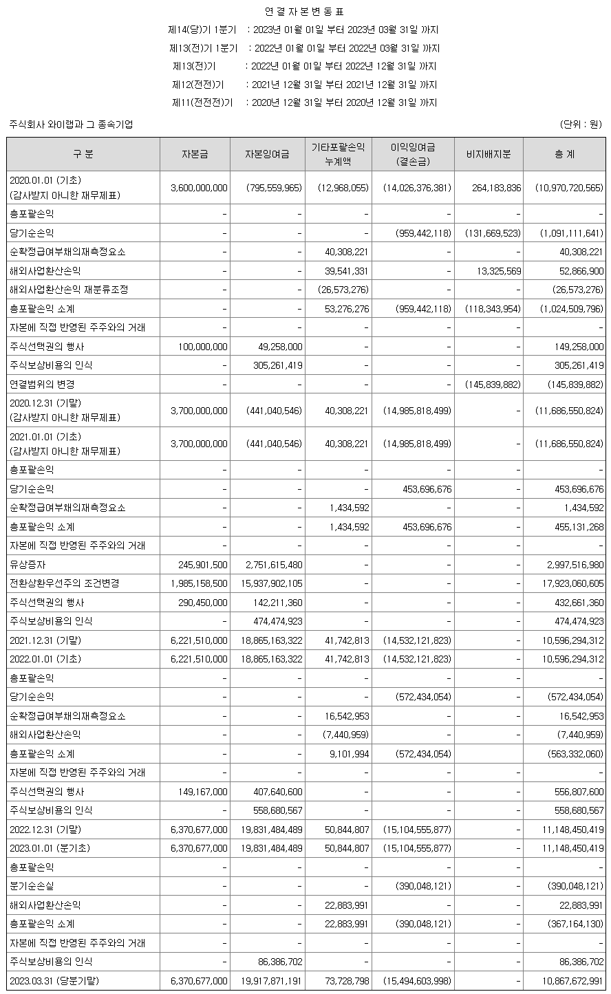 연결재무상태표, 연결손익계산서, 연결자본변동표, 연결현금흐름표는 아래와 같습니다.