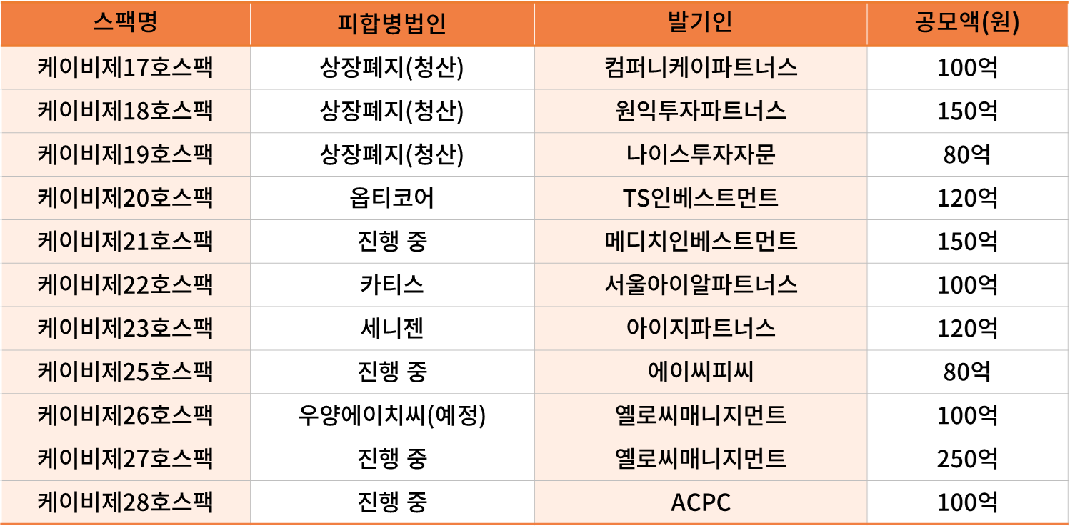 케이비제20호스팩은 옵티코어와 합병했습니다.옵티코어 주가 케이비제21호스팩은 진행 중입니다.