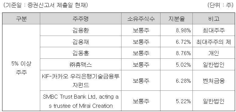 5%이상 주주 현황 (공모 전 지분율) KIF-카카오 우리은행기술금융 투자펀드는 케이큐브벤처스가 760억원 규모로 결성한 펀드입니다.